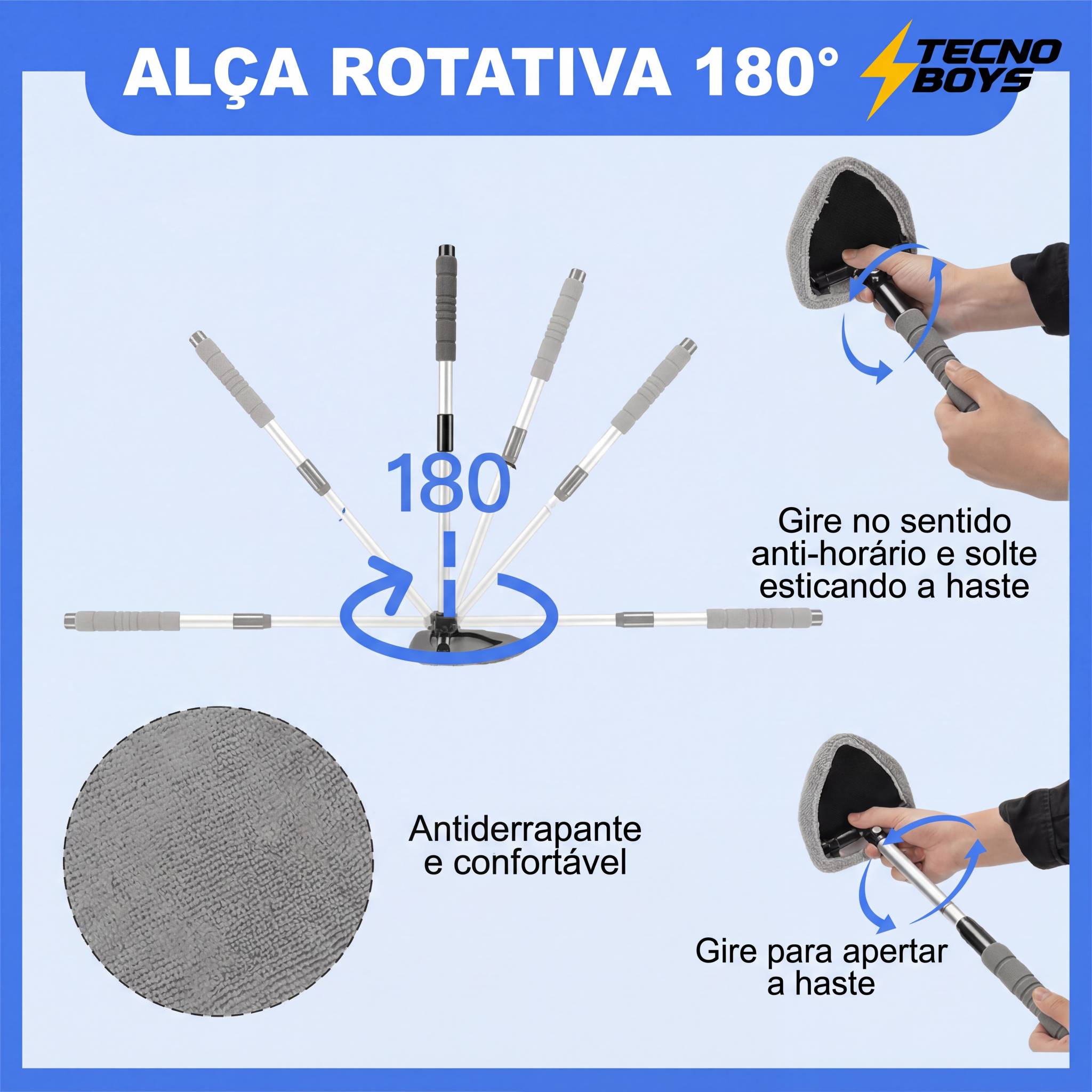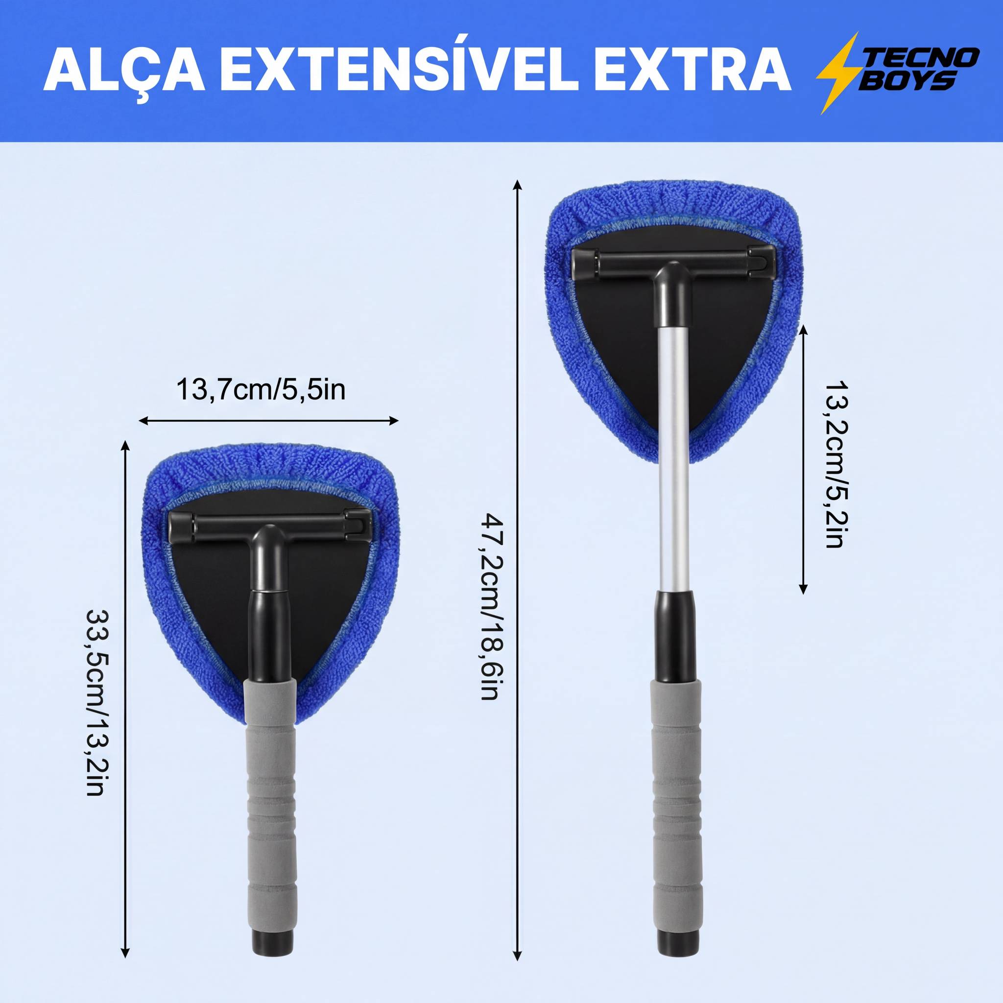 vidros altos ou cantos difíceis do para-brisa com facilidade e conforto.