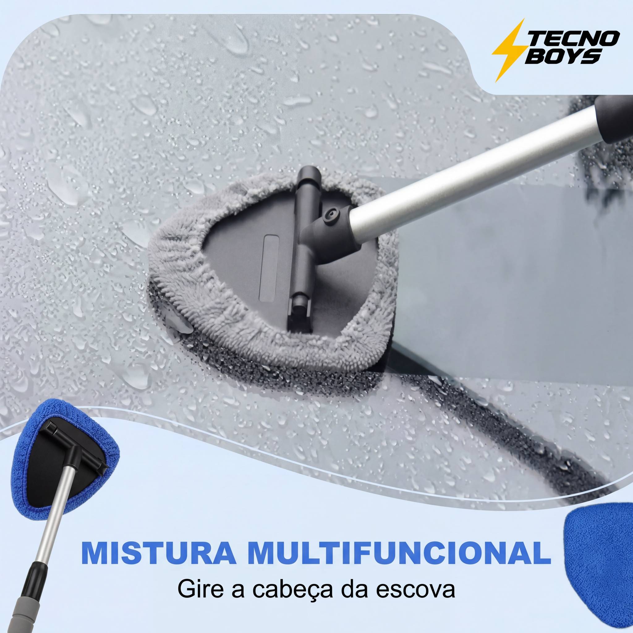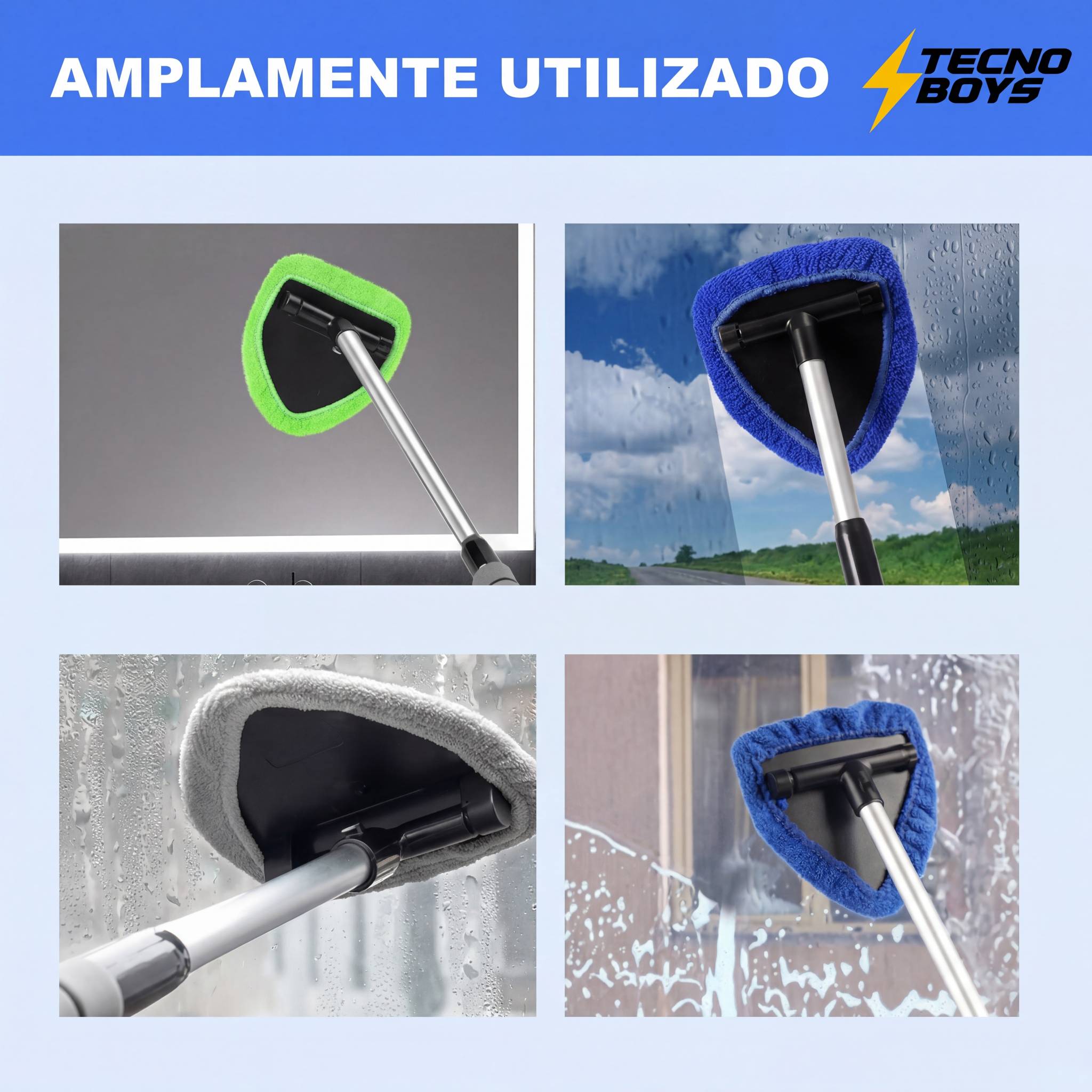 Projetada para versatilidade, esta ferramenta limpa para-brisas, espelhos,
