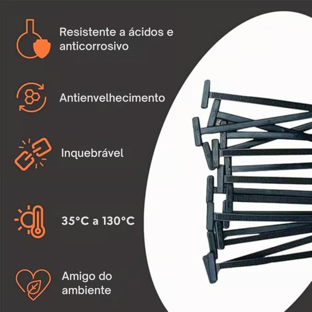 Fabricadas em nylon de alta resistência com proteção UV, estas abraçadeiras suportam: